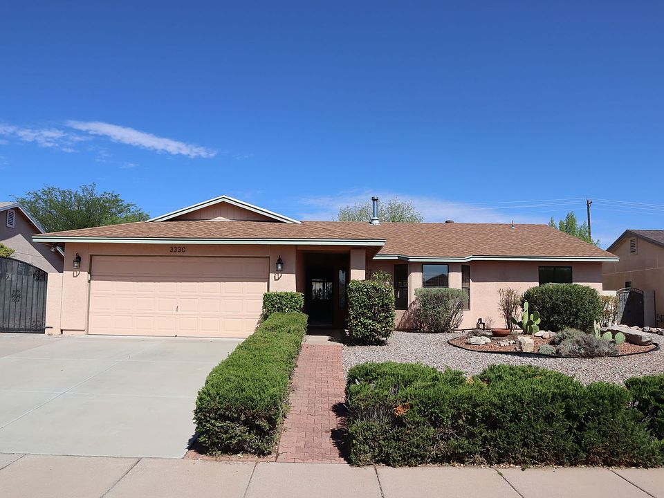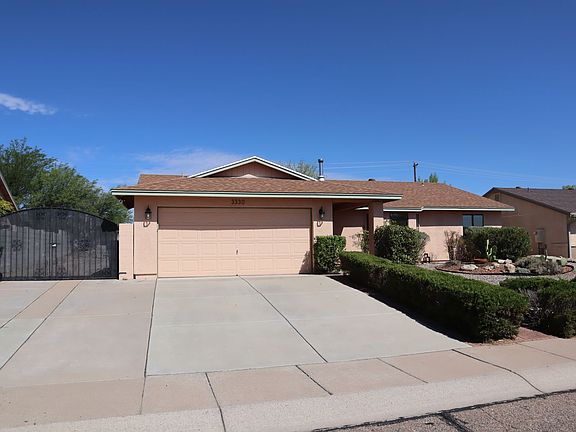 Welcome to this stunning home located in the heart of Sierra Vista, AZ. This site-built home boasts three spacious bedrooms and two full bathrooms, offering ample space for comfort and relaxation. The home features a cozy fireplace, perfect for those chilly evenings, and a central air conditioning system for those hot summer days. The kitchen is a chef's dream with an electric range, stainless steel refrigerator, and a built-in microwave. The home also includes a stainless steel dishwasher for easy clean-up. The primary suite is a true retreat with a walk-in closet. The other bedrooms are also generously sized and feature ceiling fans for added comfort. The home also includes a water softener system, ensuring you have soft, clean water throughout the home. The low maintenance yard is all gravel, perfect for those who prefer minimal yard work. The property is enclosed with a block wall for added privacy and includes an RV gate for those who love to travel. The covered patio is perfect for outdoor entertaining, and the two-car garage provides ample storage space. The entire home is tiled, making cleaning a breeze. This home truly has it all. Don't miss out on this gem