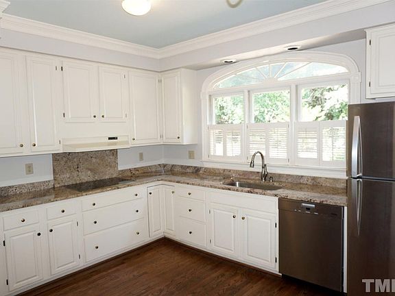 Priced reduced 33k below market appraisal! Excellent ITB location. Convenient to Downtown, RTP, RDU, NCSU & Rex. Downstairs master BR with 2 walk in closets. Two large BRs upstairs with W-I-Cs. Refinished hardwood floors throughout downstairs. New carpet in master BR. Interior just painted. Updated kitchen with granite countertops. Gorgeous moldings, palladium windows, built-in bookshelves, plantation shutters, 9 Ft. ceilings. Sun rm and deck overlooks lovely private backyard. Walk in attic storage.