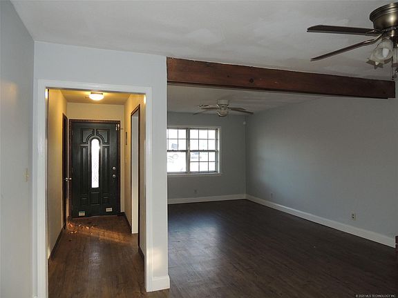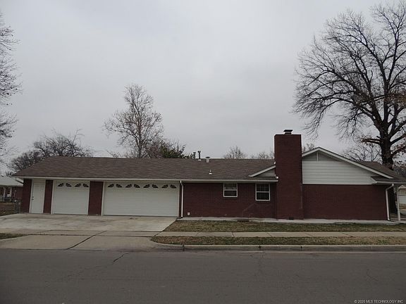 Completely remodeled house in East Tulsa with tons of unique features! Corner lot w/mature trees on cul-de-sac road. Three-car garage with workshop. Kitchen fully remodeled, stainless steel appliances stay. Master has en suite bath. Covered front porch and back patio. Beautiful detailing on wood trim. Wood-burning fireplace insert. Exterior concrete walkway areas. Convenient central location with easy access to highways. Call or text office number only!