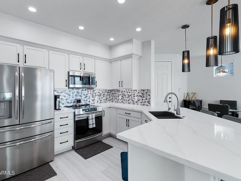 THE LOCK & LEAVE CONDO YOU'VE BEEN WAITING FOR!!! Fully RENOVATED 3-bedroom, 2-bathroom unit in the gated luxury complex of Santana Ridge. Offering a high standard of living with contemporary conveniences, exclusive amenities, and heightened security measures in an attractive Chandler location. This GROUND LEVEL unit boasts MODERN upgrades such as NEW Vinyl Plank Flooring, BRAND NEW SS Kitchen Appliances (including Induction Stove Range), RENOVATED Bathrooms with contemporary Fixtures, Backsplash, Hardware, Heightened Toilets, Fresh Interior Paint, NEW CARPET and BRAND NEW electrical enhancing the lighting throughout the condo. Three well-appointed bedrooms offer comfort + privacy, with ample closet space and natural light. The primary suite has a private outdoor space to relax and enjoy the fresh air. Luxurious Primary Bathroom is fitted with dual vanity sinks, MASSIVE counter space & large walk-in shower. The 3rd bedroom provides extra versatility, serving as a home office, additional guest room or entertainment area. TOP to BOTTOM, this unit has been tastefully UPDATED by LICENSED CONTRACTORS - you won't be disappointed! ENJOY upscale amenities such as the newly RENOVATED Fitness Center, (2) heated swimming pools, Spa and Clubhouse. Enjoy the convenience of designated parking (right outside the condo) + 1 car DETACHED Garage, ensuring both convenience and safety for your vehicles. Santana Ridge is located in a desirable area, offering proximity to shopping centers, dining options, entertainment venues, convenient access to 202/101 freeways, 30 min drive to Phoenix Sky Harbor Airport, 20 min drive to Mesa Gateway Airport and a quick drive to Intel, FedEx & more!