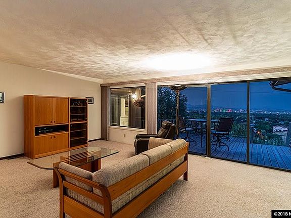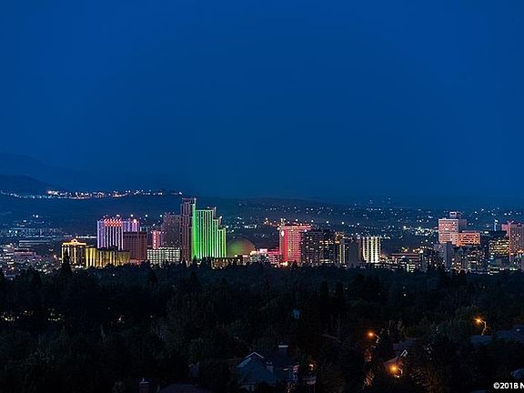 Spectacular views of downtown Reno and the valley from this single story home in southwest Reno. Perfect for entertaining, with an open floor plan, lots of windows, huge deck, and bay window. The chef will love the view when cooking from the island kitchen with all the amenities including a JennAir cook-top, built in oven, built in microwave and spacious counter tops. It is located in great neighborhood bordered by walking trail (Steamboat Ditch), with a large yard with fruit trees.