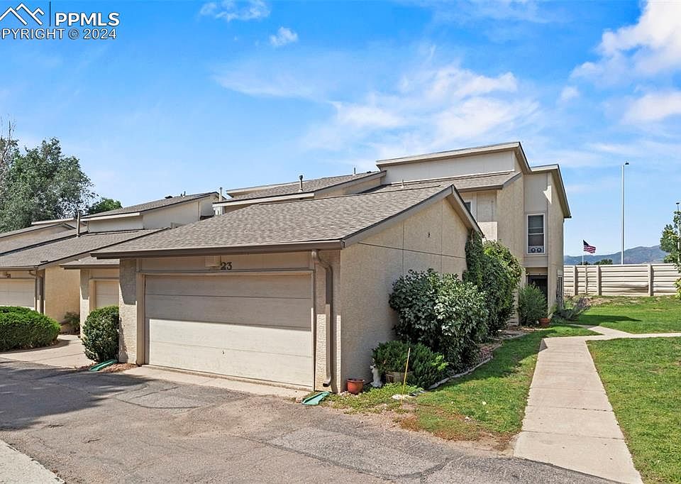 Welcome home to this centrally located 2 bed, 3 bath, 2 car attached garage townhome in Ocho Caballos! Upon entry, you'll be welcomed into the open living room area with an inviting fireplace, just perfect for those chilly Colorado evenings. The dining room area, situated next to a walk-out private patio, boasts a breakfast bar with open access to your kitchen, making mealtime a breeze. 1/2 bath on main level just off kitchen. Venture to the upper level where you'll find 2 bedrooms, a full bath and 3/4 bath. The primary bedroom conveniently adjoins to the 3/4 shower and houses west facing windows, where you'll be able to enjoy those breathtaking views of Pikes Peak and the front range right from the comfort of your own room! The second bedroom has its own roomy closet and is in proximity to the full bath. Laundry area located just off garage indoor entry. Community tennis courts, pool area, and clubhouse with ammenities are minutes walking distance from your own front door. Complex located within vicinity to Colorado Springs Country Club! This is one you don't want to wait to see! Schedule your tour today!