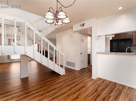 Beautiful updated townhome across from the Colorado Springs Country Club. Located on one of the best lots in Ocho Caballos, features of this home include updated main level flooring*Living room with gas fireplace*Vinyl windows*Kitchen w/granite countertops and flat top range*Updated bathrooms*2-car garage*Must see!!!
