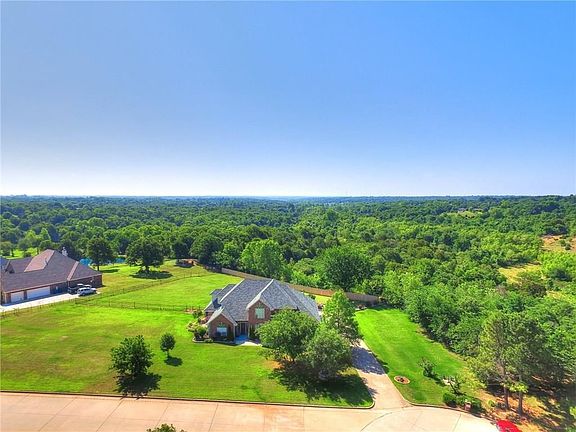 Elegant Country Living at its finest! Beautiful gated community with one of the best lots in the neighborhood. Home sits on 1.2 acres (MOL) with gorgeous views in every direction. Relax in your private backyard oasis complete with heated pool overlooking over 30 acres of land. Very flexible floor plan with rooms to fit any lifestyle and could be ideal for multi-generational living with a second floor mini master suite with full bath, walk-in closet and its own laundry and bonus room for extra living space all on the second floor. The large Master Suite on the first floor includes a 2-Way FP (out to Indoor Atrium), deep jetted tub, dbl vanities, and double walk-in closets w/ built-ins. Attic is decked for additional storage. Close to Tinker AFB, Boeing and Heart Hospital South. FEATURES: 4 Bed~~~3.5 Baths~~~2 Liv~~~2 Din~~~2 FP~~~Office~~~Bonus Room~~~2 Laundry Rooms~~~4 Car Garage~~~10-12 Person Storm Shelter~~~Heated Inground Pool~~~Indoor Atrium~~~Totally Fenced~~~Central Vac System!