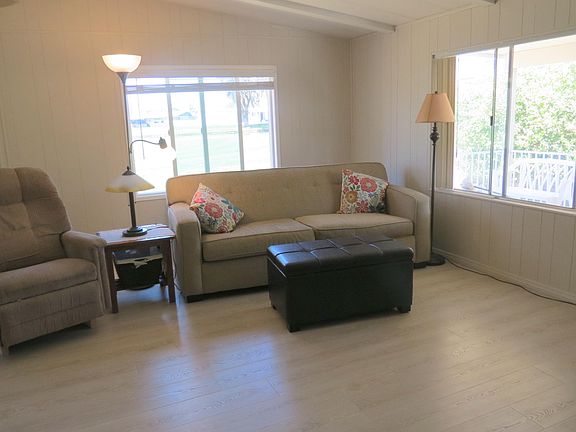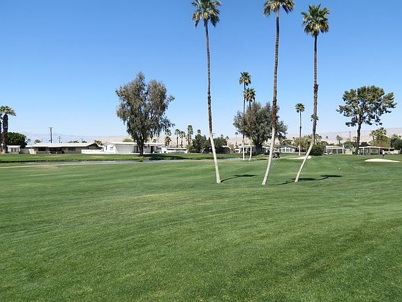 Bright & sunny updated home in Tri Palm Estates & Country Club! This charming 2-bed, 2-bath home has been updated with fresh paint inside and out, white cabinetry and laminate flooring. Featuring an open concept kitchen, dining room and living, the space is perfect for entertaining, especially because the views take in the 17th fairway of this GOLF COURSE property. With some of the most desirable views in Tri Palm Estates & Country Club you'll enjoy outdoor living & entertaining all year round. All appliances and most furnishings are included, so you're ready to move in! Tri Palm Estates & Country Club is an active 55+ community where YOU OWN THE LAND, and where ownership includes free unlimited golf for 2 deeded owners, tennis, swimming, pickle ball, shuffleboard, and use of the Clubhouse with its banquet room, restaurant, bar, billiards room, and organized clubs and activities. With easy access to I-10 you're just minutes from the shopping, dining, and services of Rancho Mirage, Palm Desert, and downtown Palm Springs. Come make this tidy golf course home your quiet desert getaway!