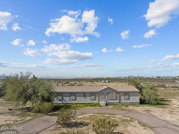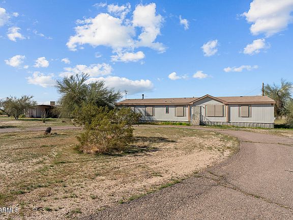 Introducing an exceptional horse property sprawling over 4.714 acres, boasting 9 spacious pens and a cleared dirt patch primed for a potential arena. With ample room for additional features like a mare motel, more horse pens, or a hot walker, this property offers limitless possibilities for equestrian enthusiasts. Featuring 4BD and 3BTH, one Jack and Jill arrangement. Recent upgrades include new toilets and tile throughout the house. The living room provides ample space for relaxation with a fireplace, as well as a separate office. The large eat-in kitchen is equipped with great cabinet space. A formal dining area adds an elegant touch to the home. Storage room could be remodeled for second home. Located at the end of a dirt RD. 20min to Buckeye, 1hr to Wickenburg. Private water company!!