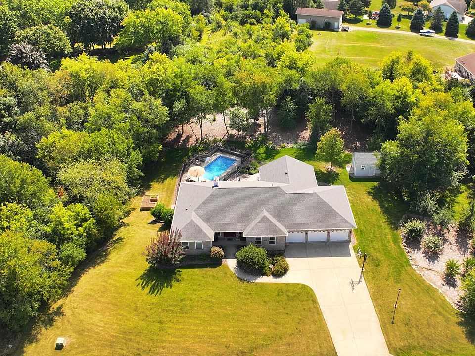 Discover the perfect blend of privacy, comfort, and resort-style living in this beautifully maintained four bedroom brick walk-out ranch, tucked away in the peaceful Town of Waterford. Step into your own backyard oasis featuring a 28x14 in-ground pool surrounded by lush, professional landscaping - ideal for relaxing or entertaining. The stamped concrete patio leads to the fully updated lower-level recreation room, offering seamless indoor-outdoor living. Upstairs, a spacious great room with a charming brick fireplace flows into the newly updated kitchen and dining area, all overlooking your serene, private yard. The upper patio is accessible from the Primary bedroom - offers yet another spot to unwind, complete with an overhang for enjoying rainy days outdoors. Brand new 20x12 shed.