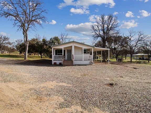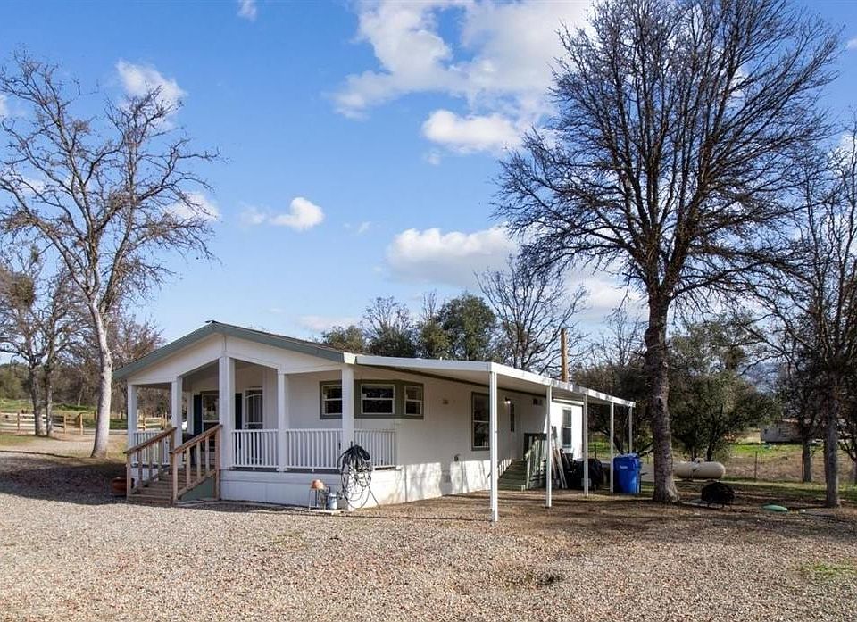 PRICE REDUCTION!! Nice foothill property on over 2 usable acres. This manufactured home has a deck for enjoying the sunset and an attached carport. Home has 3 br 2 ba and nice open floor plan with eating area that opens up to living room. The kitchen has new stainless steal appliances and a pantry and nest system for hVAC. New flooring is rustic laminate h20 which is a breeze to keep clean. Well is approx 400 ft down and 7 gpm with an engineered septic system. Property is close to town and fully fenced right off paved road with gate and park like setting in front with large oak trees. Plenty of room for animals. Also, a seasonal creek that runs at back of property. This home is on a permanent foundation.