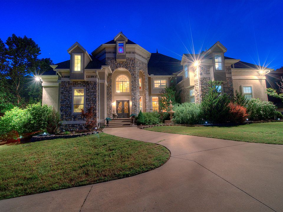Exquisite French Chateau! Enjoy Grand Lake and privacy on 4 acres-more available. Brand new roof June 2020. Energy efficient home has 12'' thick concrete exterior walls providing safety & low energy costs. French doors, Pella windows, Slate gallery, stucco & rock ext. 6 spacious suites w/ WIC. 6 bathrooms w/ marble & granite. Circular foyer w/ custom iron stair rail, library w/ 20' ceilings. 2 story living rm w/ gas FP & expansive Dining rm w/ wood floors. Tiled 18x24 Kitchen w/ 2 islands, granite, SS appliances, nook, laundry, pantry & office. Master suite on main level. Full finished basement w/ safe rm, bar, billiards, bathroom, arcade, gym, theater, bed rm & storage. Lake access & view of Woodward Hollow. Area of luxury homes w/restrictions. 10 minutes to Grove. Agent is owner.
