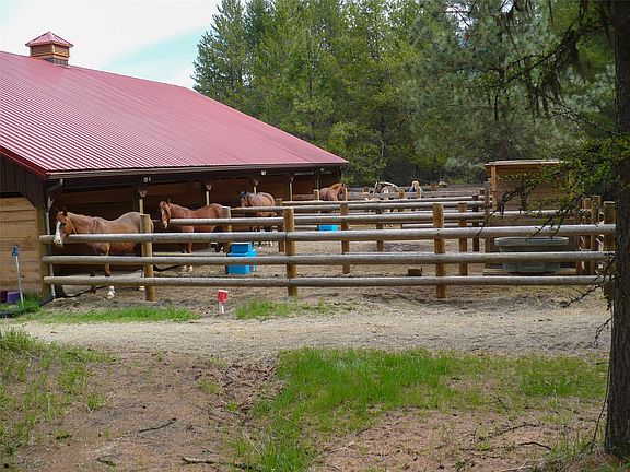 Drive through, 36x72, 3-stall barn with electric garage door opener. Insulated, generous tack room. Concrete floor. 6 turn-outs with shelters, including 3 double-sided heated waterers, which serve 2 turn-outs each. Frost-free faucets on either end of the barn, outdoor lighting, wired to be energized by a generator. 4 fenced pastures with energizers. 80x120 outdoor, fenced arena. Incredible Cabinet and Little Coeur d' Alene Mountain views from this conveniently located property, 4 miles from Trout Creek. Enjoy all that Montana has to offer!