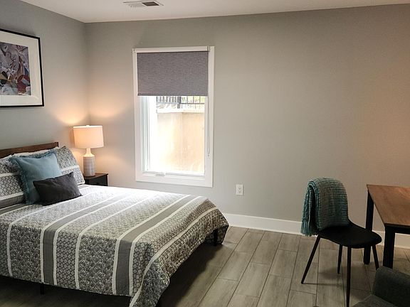 -Furnished bedroom- bed/mattress, 2 end tables, desk and chair, and upholstered arm chair (furniture can be removed if requested)