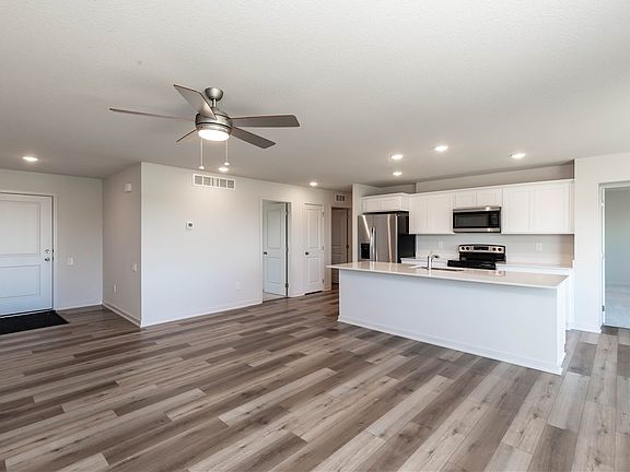 Builder is offering a 3/2/1 interest rate buy-down OR $10,000 credit through with preferred lender! Progressive Builders presents the NEW Jasper ranch plan. This modern, spacious plan includes: 3 large bedrooms, 2 bathrooms, 1,472 finished SF, 3 car attached garage w/ openers, treated deck, all appliances, & 6-year tax abatement! The main floor has a large & open kitchen/dining/great room area perfect for entertaining & has waterproof LVP flooring throughout. The spacious kitchen has painted cabinets, pantry, quartz counter tops, SS kitchen appliances w/ refrigerator, & electric fireplace. Owners' suite is tucked away in back of home for privacy & includes private bath w/ double vanity, shower, & walk-in closet. The front of the home has 2 nice sized bedrooms, & bath. Off the garage is a big laundry / drop zone w/ mud bench & includes washer/dryer. Other highlights are treated deck w/ stairs to the ground, no maintenance vinyl siding, 30 yr. shingles, open green space in back yard, walking trail, fully sodded yard, 1 year builder warranty, & 6-year tax abatement. Development is conveniently located close to parks, walking trails, grocery store & schools. Use Preferred lender and get up to $2,000 in closing costs. All photos of the actual property.
