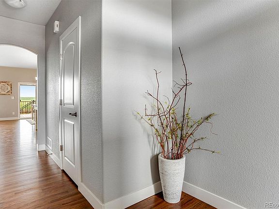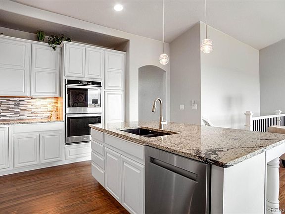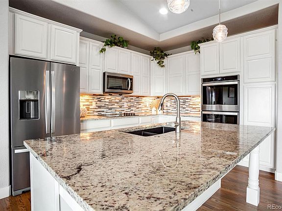 YOUR GONNA ABSOLUTELY LOVE THE GARAGE! 4-car attached garage/RV/Boat Bay with 1,091 SQFT. Hot & Cold water spigot as well as Gas & Electrical outlet installed for future needs. Stunning ranch style home with open floor plan. Spacious kitchen with granite countertops and island, white painted cabinets and stainless steel appliances - with double ovens. Enjoy the view off of your trex deck which also leads to the nicely maintained backyard. HUGE master suite plenty of room for all your bedroom furniture. Master bath includes double sinks with granite countertops, soaking tub and separate shower PLUS radiant heated floors. Great room with floor to ceiling stoned gas fireplace. Full unfinished Garden level basement plumbed for wetbar, great for future expansion. Some added features include: Smart Double Oven, Upgraded lighting package with Wyze Smart Switch, Ecobee Smart Thermostat with room sensors. So many features in this great home! Easy access to I-25, shopping and schools.