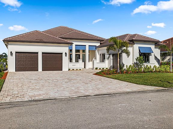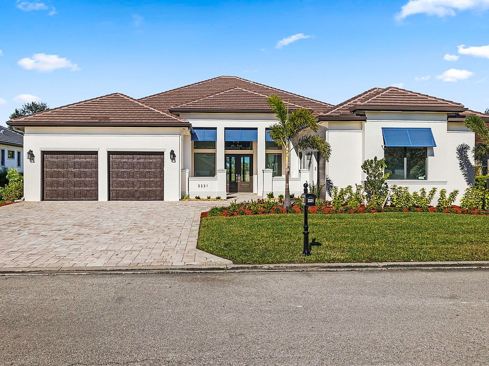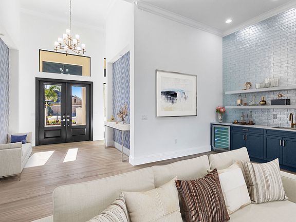 CURRENTLY UNDER CONSTRUCTION - SELECT YOUR FINISHES! Home is approximately 3,841 square feet with 3 bedrooms / 3.5 bathrooms / a large living room for entertaining and a second multi-purpose living space. Soak up the sun on the large screened-in lanai that comes complete with a pool with water features and a screen picture window! Spacious floor plan with minimum 12 foot ceilings throughout the home with multiple upgrades, including: upgraded exterior double doors, decorative multi-tiered tray ceilings, hurricane safe impact windows and doors, oversized tile floors, crown molding throughout the home, and an oversized 3-car garage with extra storage space. Open kitchen comes equipped with upgraded appliances, quartz counter tops, large decorative island, and a built-in bar with wine refrigerator. Master suite and bathroom complete with an oversized glass enclosed rainfall shower with a fixed shower-head, separate body sprayer, and large walk-in closets!