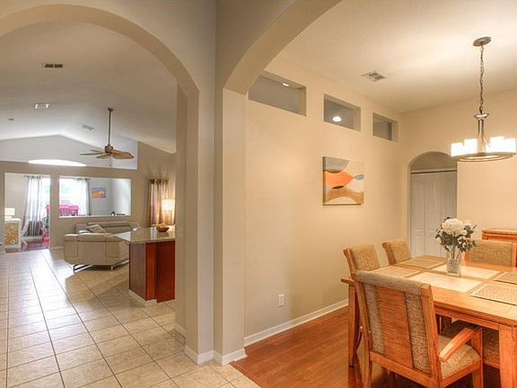 GORGEOUS MODERN UPDATED 3 bedroom + den, 2 bath, 2 car garage MOVE-IN-READY HOME IN GATED, GOLF COURSE COMMUNITY on a cul-de-sac street in Land o Lakes, FL. Tile, wood & new wood laminate floors throughout... no carpet here! Large great room plan with Beautiful NEW Eat-in Kitchen with large closet pantry, new breakfast bar, new modern Wood Cabinets, new Gleaming Granite, new under-mount sink, and new Stainless Steel Appliances - Flat top Range, Quiet Dishwasher, French Door Refrigerator with water & ice, also extra middle drawer & Freezer on the bottom. Amazing Updated Master Bathroom with new modern wood cabinet, Granite and dual bowl sinks, walk-in shower, garden tub, walk-in closet and water closet. A light, bright den/bonus room for play room, office, crafts, whatever you need, even possibility for a 4th bedroom with a little planning. The hall bath is also updated with Granite counter top and Hammered Copper Sink. Bedrooms 2 & 3 also have new wood laminate floors. French doors lead to your extended screened lanai already wired for a hot tub, and huge privacy fenced back yard. Location is the best... Down the street is an amazing Pasco County Park with organized sports, ball fields, tennis courts, gym, pool & library & more. And also it's assigned to the Best Schools. Near new Outlet Mall, Wiregrass Towne Centre, lots of restaurants, movies, churches, activities and shopping... Better hurry to see this one!