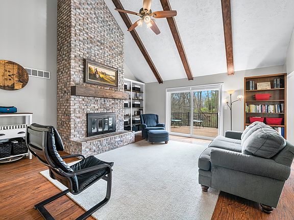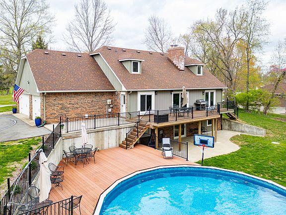 This incredible 6-bedroom, 3.5-bath brick home offers space, style, and endless versatility-perfectly situated in a quiet, welcoming neighborhood. With a full finished walk-out basement and thoughtful updates throughout, this home truly has it all! Step inside to a bright, open-concept main floor where the great room, dining area, and kitchen flow seamlessly together. Soaring ceilings, a stunning 2-story stone gas fireplace, built-in bookshelves, and a wall of windows overlooking your private backyard oasis create the perfect gathering space. The kitchen is a chef's dream with stainless steel appliances, double ovens, ample counter space, and stylish finishes. The main level includes a spacious primary suite with a walk-in closet, double vanity, and a luxurious garden tub for relaxing soaks. A second main-level bedroom offers flexibility as a guest room or home office. Upstairs, you'll find a cozy loft that overlooks the great room, two oversized bedrooms, a full bath, and a large bonus room currently set up as a fun-filled play space complete with a rock climbing wall and slide-imagination welcome! The finished walk-out basement offers even more room to spread out with two additional bedrooms, a full bathroom, and a spacious recreation or game room area-pool table included! Step outside into your very own backyard retreat featuring an above-ground pool, play set, fire pit, in-ground trampoline and mature trees providing privacy and shade. This is the kind of home that checks every box-spacious, updated, fun, and nestled in a quiet neighborhood. Don't miss your chance to make it yours!