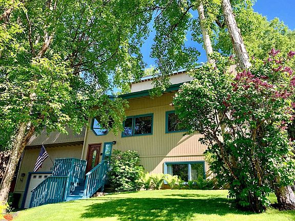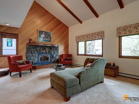 Enjoy the best of both worlds here with a lovely park like setting in the back that is serene & private and picture perfect neighborhood in the front. This contemporary floor plan was ahead of its time with vaulted living room featuring wood beams on ceiling and striking accent wall. Hand hammered copper faced direct vent fireplace and so much natural light from multiple W facing windows.