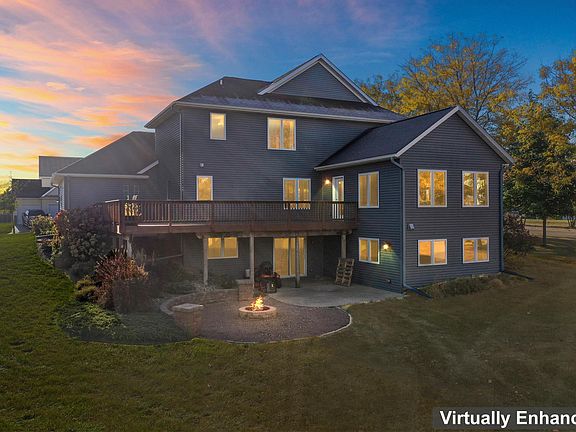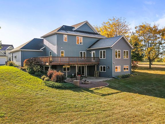 Welcome to this spacious 5-bedroom, 4-bath home, ideally situated on a south-facing lot within walking distance to schools, parks, and trails. Nestled on 0.65 acres, this home offers a generous addition, expanding the living space and featuring two cozy fireplaces, perfect for those chilly evenings. The lower level boasts a welcoming bar area, ideal for gatherings, and ample storage ensures everything stays organized. Step outside to enjoy the inviting front porch, the back deck, or the cozy fire pit, all overlooking a large yard, perfect for outdoor activities and relaxation. Recent updates, including a new roof, siding, garage door, carpet, and fresh paint throughout, give the home a modern, refreshed look. Combining comfort, functionality, and style, this home is located in a highly desirable neighborhood.