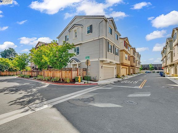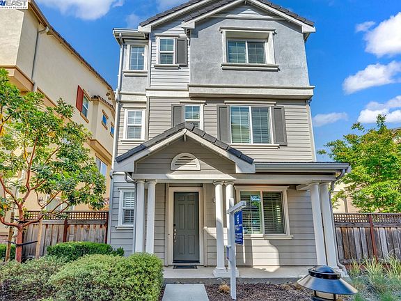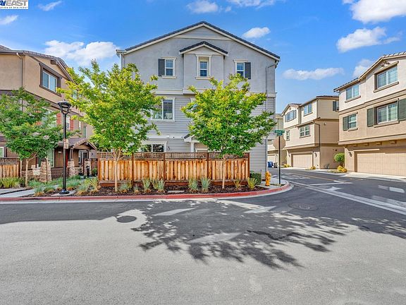 Corner lots with a premium size patio shaded with mature trees perfect for entertaining! Featuring 3 bedrooms and 2.5 baths, minutes from the San Mateo Bridge, BART, and downtown Hayward with restaurants, shopping and Saturday morning Farmer's Market. As you enter you will notice high ceilings with plenty of natural light and open layout wonderful for entertaining. Huge kitchen with quartz counters, stainless appliances, large center island, gas stove and walk in pantry. Additional features include high end laminate flooring, recessed lighting, dual zone heating and air conditioning, 2 car attached garage with 220V plug for electric car charging and solar panels included! In addition to being built with over $50K in builder upgrades, this home has a custom California closet system in the master bedroom, built-in custom bookcase on lower level, and plantation shutters throughout! The master suite is located on the top level and has a large walk-in closet, and walk-in shower. Also on the top level are two bedrooms, and a full bathroom. The second level includes the dining room, half bathroom, great room, kitchen, and walk-in pantry. The lower level includes laundry and bonus room that makes for a great living/media room or office.