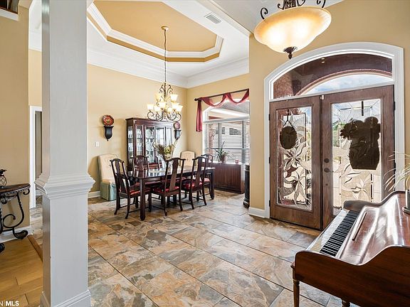 **Value Range Market Sellers will entertain offers between $545,000 and $560,000.** This custom-built 5-bedroom, 4-bath home in popular Twin Lakes Estates in Saraland offers ample space for a large family. Located in a popular area, the property boasts several noteworthy features. The chef's kitchen is a highlight of the home, with its open layout connecting it to the living room. The kitchen is equipped with custom cabinets, granite countertops, a large island, and all appliances, including the refrigerator, are included in the sale. The spacious living room features vaulted ceilings and recently installed bamboo hardwood flooring, creating an elegant and inviting atmosphere. The primary suite, also adorned with bamboo hardwood flooring, has its own en-suite bathroom. The primary suite bathroom offers a large jacuzzi tub, a separate shower, and double vanities. A sunroom is situated off the living room, providing scenic views of the water. Additionally, there is a sizable bonus room on the upper level, also offering a large window with a view of the same picturesque scenery. This bonus room can serve various purposes, such as a guest suite or teen suite, as there is a full bathroom with separate shower and shower also upstairs. Parking won’t be an issue with a 3-car attached garage and parking pad in front. Call for your showing today!!