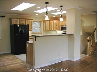 WOW! 1/2 block from Garden of the Gods trail head and no houses across street. Totally remodeled & updated to be energy efficient, 4 yr. old 95% efficient furnace, water heater, new vinyl windows, added insulation, new open kitchen w/new cabinets, appliances, remodeled bathrooms, hardwood floors, new carpet on LL, new electrical panel, light fixtures, crown molding, new leaded glass front door, new 6-panel white doors and trim, new GDO, double lot has been merged into one, new fence, apple trees, perennials,