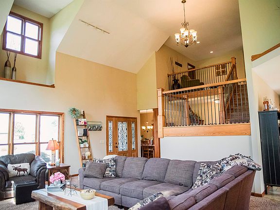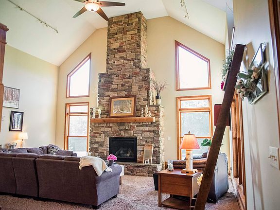 Walk into a spacious living space with a floor to ceiling stone fireplace to warm up to on those crisp fall days. Breathtaking custom cabinetry throughout and granite countertops in kitchen. Over 4,000 sqft of finished living space and main floor laundry. Main floor master bedroom and bathroom features a 5X5 walk in shower with two shower heads. Upper level has a loft area overlooking the living space and an additional room that was used as office space, but could be used as a 5th bedroom. Captivating vaulted ceilings throughout. Fully finished walk out basement and workout room. Ever dreamed of having your very own movie theatre? Well, now you have one with a projector size 8X5 ft. Two 46 gallon water heaters and geothermal