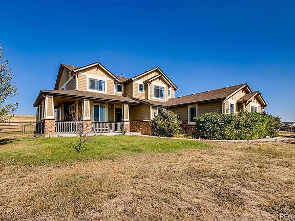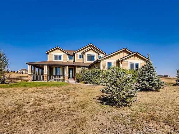 Beautiful 2 story home with HUGE shop on 5+ acres. Plenty of room for your RV's, boats and all of your toys. Full unfinished basement (set with Radon system) ready for your custom design. Wrap around porch brings you to the front door. Upon entering, there are hardwood floors throughout most of the main level bringing you through the central hall to the well appointed kitchen with stainless steel appliances,(dual convection ovens, 5 burner gas stove, fridge/freezer with dual ice makers) and granite countertops and a large central island. French doors open to the newly remodeled stamped concrete patio, perfect for outdoor dining. Upstairs you will find a loft, open to the vaulted great room and sliding french doors open to the outdoor Trex deck, master bedroom with 5 piece bath and huge walk in closet, 2 guest rooms and another full bathroom. Home is set with Safesystem alarm (with or without monitoring). Oversized deep 4 car garage and 1440 sq ft detached shop (with 2 overhead garage doors-12'x14' and 10'x14') with side office or tack room and additional storage area with barn door access to the back. Yard is fenced for dogs/animals and property is bordered on 2 sides by equestrian trails. Wild Pointe is a unique neighborhood with trails and open space for riding and hiking. Allows for chickens and horses.