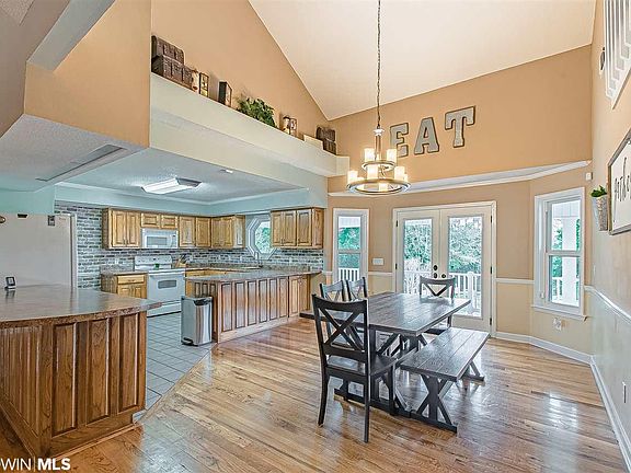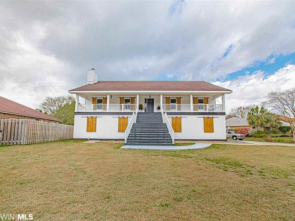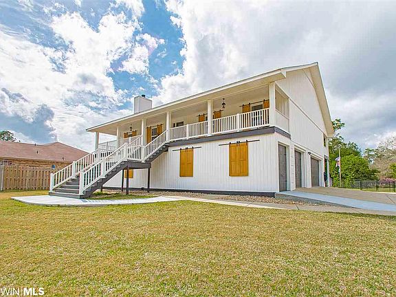 This is riverfront living at its best! Gorgeous home, convenient to both Baldwin county and Pensacola, this property was designed for entertaining. The outdoor living opportunities with this home are numerous: covered porches front and back, fenced in backyard, and Styx river along the back of the property, leading to Perdido Bay and beyond to the Gulf of Mexico. Inside, there is plenty of space with vaulted ceilings, plenty of windows, and a loft overlooking the main living area. Updates inside include: fresh paint throughout, new flooring in hallways and bedrooms, guest bath renovation, all new windows and doors, and more. Downstairs boasts an oversized garage with plenty of storage room as well as a separate living area, bedroom, and ensuite bathroom with its own separate entrance. The exterior has been freshly painted and the shutters have been replaced with barn-door style sliding shutters. This home is one you must see in person!