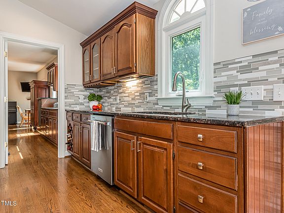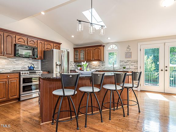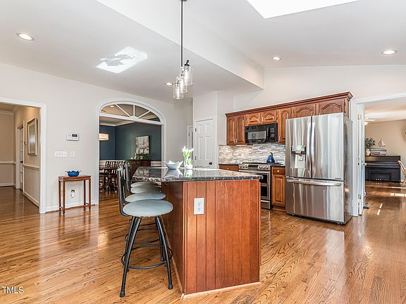 Welcome to your dream home on a large, private wooded lot in the desirable Deer Chase neighborhood of Wake Forest! Offering a blend of modern finishes and timeless charm, this home truly has it all. Glowing hardwoods and abundant natural light flow through immaculate new windows and fill your open floor plan, complete with a wood burning fireplace, dining room, and sunroom. Downstairs features an optional income-producing opportunity or in-law suite with a large flex room, attached full bath, kitchenette space and separate exterior entrances. Ascend the beautiful oak-tread staircase where you'll find the master suite, 3 bedrooms, and a bonus room updated with new carpet and floors. The en-suite master bath and owners closet are beautifully renovated. Enjoy gorgeous evenings on your raised patio overlooking your private, flat grassy backyard. The TRUE 2 car garage comes with a work bench and a 220V EV Phase 2 charging port. Nestled on a serene 0.69 acres with NO HOA, this is the home you've been looking for!