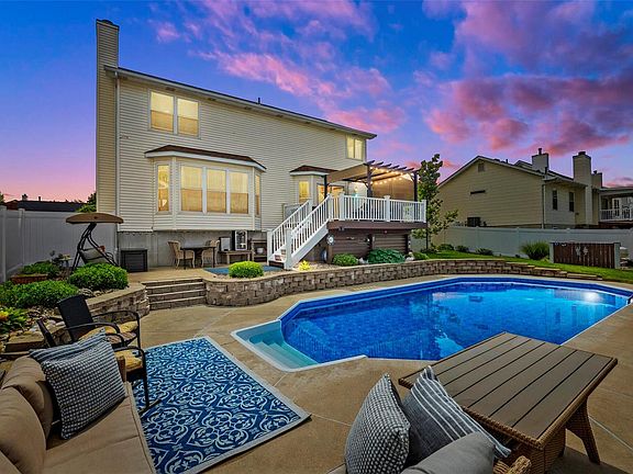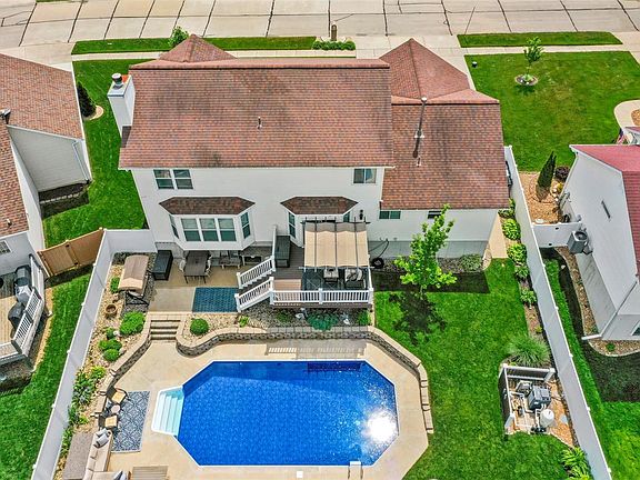 Meticulously maintained home & upgrades galore! Inground pool just in time for summer! This wonderful two story home greets you w/ superbly maintained lawn, covered porch, shake siding, oversized driveway w/ extra parking & oversized/insulated garage w/ workshop area! Inside - hardwoods throughout, newer windows & fixtures, private office w/custom built ins, separate dining, upgraded kitchen w/ granite, stainless, backsplash, under cabinet lighting & center island! There's also a wonderful living rm w/ custom stone surround gas fireplace, built-ins, coffered ceilings, main level laundry & breakfast rm leading to NEW composite deck '22 overlooking a large patio, saltwater pool & NEW vinyl fence '22! Upstairs - custom loft area perfect for gaming, office or study, 3 large bedrms w/ updated baths, 2x vanity, walk-ins & coffered ceilings! Finished lower level - huge rec room, full bath, separate sleeping area & plenty of storage! ***pergola, patio BBQ furniture and shed below deck stay!***