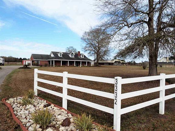 RANCH HOME ON A HILL... Everything you need to live in the country! Beautiful brick home finished in 2007 has real hardwood floors with 3 bedrooms, 2 baths and an open floor plan. The master is huge with sitting area & walk-in closet. The master bath has a jetted tub, double sinks, and makeup area. The kitchen has beautiful wood cabinets, an island, and would be perfect for those family gatherings where everyone tends to gather in the kitchen. The back patio has a privacy fence around the 28' round pool. There is a 30' x 40' barn with 15' lean-to's to park all the tractors, and other toys. All of this is sitting on 10 amazing acres of improved pasture cross-fenced for your cows, horses, or other farm animals including a feed lot for calves, chutes, corral, and chicken pen!