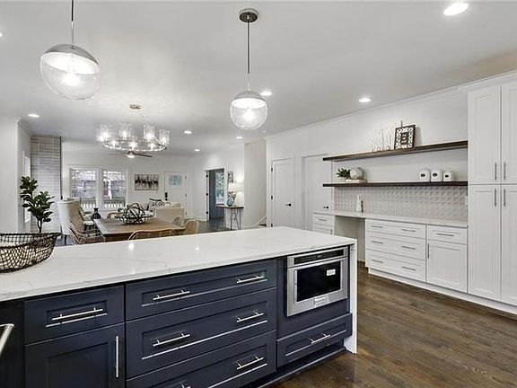 - Kitchen Features: Breakfast Bar, Cabinets Stain, Pantry, View to Family Room, Stone Counters, Kitchen Island, Cabinets White