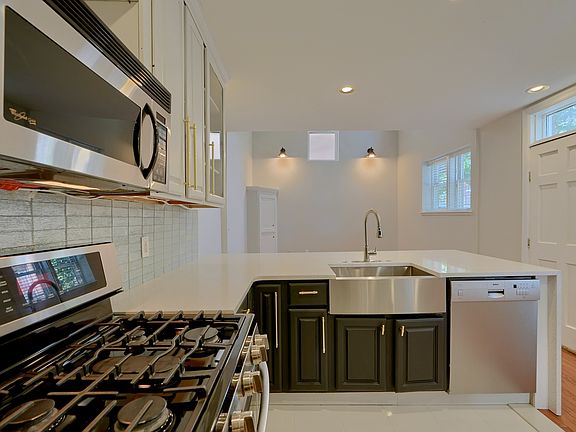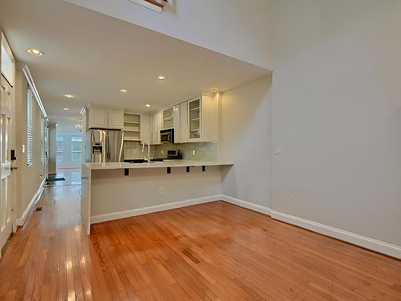 Beautiful end of group row home flooded with natural light in prime Canton location. On the main level enjoy hard wood floors, updated kitchen, with waterfall edge quartz counter top and stainless appliances, main level half bath, two story flex space off of kitchen for dining area or den, and large living room with gas fireplace and countless windows. Upstairs find 3 true bedrooms and 2 full baths to include primary bedroom with walk in closet and en suite bath. Venture further upstairs and walk out onto an enormous, composite, rooftop deck complete with built in wet bar area. Perfect for entertaining or enjoying quiet time with a good book. Conveniently located near JHH, 95, 895 and all of Cantons finest shops and restaurants. Tenant responsible for all utilities, and renters insurance, 12 month minimum lease, pets on case by case basis additional pet deposit