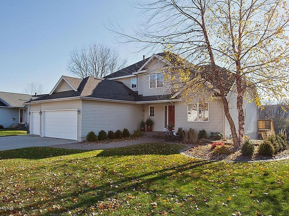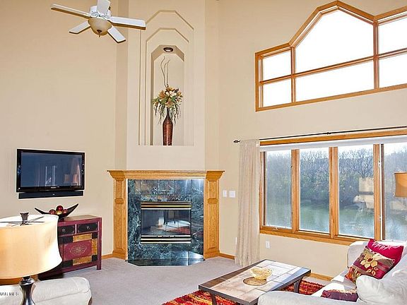 Gorgeous walk-out 2 story on the Lake! Features main floor master suite, wall to ceiling windows in the living room overlooking the breathtaking view of the Lake. Brand new deck & your very own sandy beach! 2 F/P, master bath has jetted tub & separate shower, all 3 levels completely finished. A nice home with all your entertainment right in your own backyard. Bike trail access at end of street.