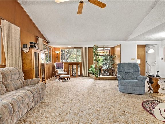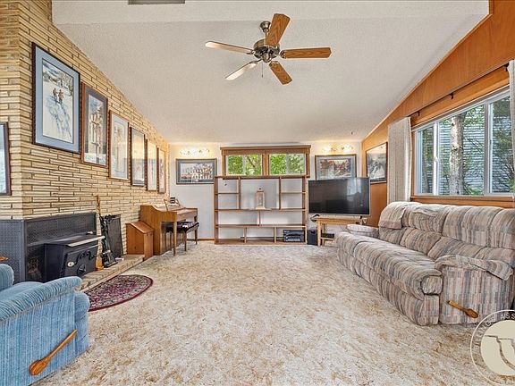 Charming 1,822 sq. ft. home on nearly half an acre, tucked off Rimrock Road for a private setting with city water. Features a detached 2-car garage, private driveway, and landscaped yard with in-ground sprinklers. Main level offers carpeted living areas, wood-burning fireplace, kitchen with appliances, dining area, and a garden nook ideal for plants. Primary bedroom with en suite bath also on the main level. Upstairs includes two bedrooms, both with built-in desks and closets, plus a bonus area. Lower level has a family room with sliding door to screened patio, laundry with sink, and extra storage. A unique, well-kept property offering space, character, and privacy.