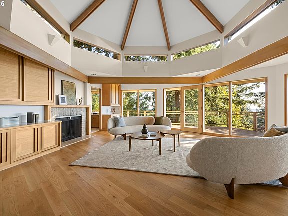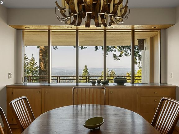 “The Carousel House” was commissioned by the Wyse family in 1969 and has remained in their care ever since. Designed by architect Marjorie Wintermute, one of Portland’s pioneering female architects and an alumna of Pietro Belluschi’s office, together with landscape architect Barbara Fealy, one of the Pacific Northwest’s most celebrated designers, the home captures a moment when modern architecture and landscape design were rooted in both innovation and sensitivity to place. The earliest plans came to life around the Wyse table, sketches spread out, martinis in hand, conversation carrying on late into the evening. Wintermute drew inspiration from Frank Lloyd Wright, shaping a roofline both bold and considerate. Its low planes echo Wright’s Prairie ideals, while clerestory towers draw light deep inside. Designed to preserve neighbors’ views, the three octagonal clerestory ceilings radiate outward like a carousel, giving the house its enduring name. Inside, wood paneling, built-ins, and three fireplaces bring warmth, while the original kitchen remains efficient, playful, and a joy to cook in. The great room gathers light by day and glows by night, opening to two decks with valley views from both levels. Fealy’s terraced plantings and layered greenery frame the house with harmony and quiet drama. With three bedrooms across more than 4,400 square feet, the plan offers flexibility for family, guests, or creative pursuits. First time on the market, held by one family with pride for over five decades. Sale also includes the adjoining .19 acre separate tax lot, with valley views and property access from SW Altadena. [Home Energy Score = 1. HES Report at https://rpt.greenbuildingregistry.com/hes/OR10242025]