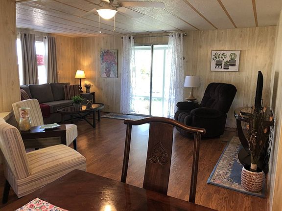 This well-maintained immaculate home is beautifully furnished and move in ready! Two bedrooms, two baths, living room, dining room, kitchen. The upgrades in this home are numerous! All sinks and faucets have been replaced. Most light fixtures have been upgraded. The refrigerator is just a few months old. The kitchen flooring was recently upgraded and the laminate flooring is less than two years old! All the paneling is in excellent condition. The floor plan is open and offers plenty of room for entertaining. The kitchen includes many cabinets and a workstation. The outdoor living area includes privacy blinds. There are three outdoor living areas. This home has a front screen room and a rear screen room. There is also a lanai. The Craftsman 7x7 storage shed is perfect size for your storage needs! Call Us Today! This Home Will Sell Fast! Waterside Club is a beautiful 55 community just minutes from banks,restaurants, shopping, golf, beaches, medical facilities, doctors, theaters, movies, boating, fishing, YMCA and places of worship. Our beautifully decorated clubhouse is a gathering place for all to enjoy. The activity center is home to a computer lab, fitness center, and billiards. If you are looking for serenity, our large heated pool has a large deck area for relaxation. We are anxious to welcome you to the Waterside Club family. Enjoy Florida's beautiful weather and meet all of your friendly neighbors in this active retirement community. Don't forget, you are permitted two pets!
