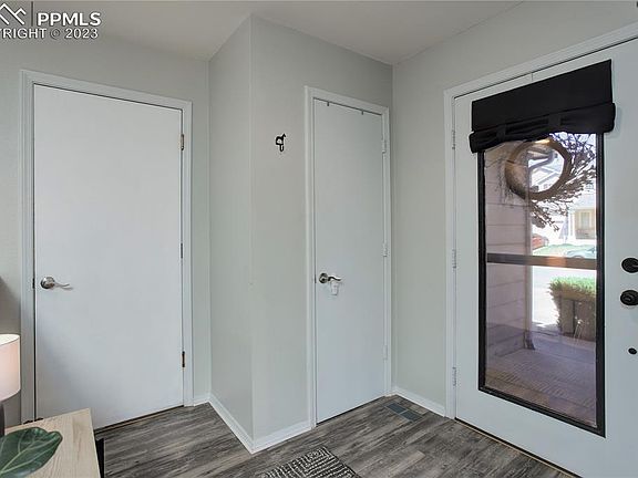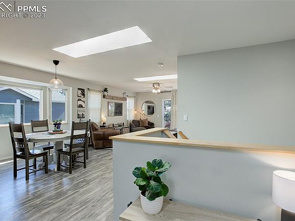 This property is a beautiful, newly remodeled home with a lot to offer. The open ranch floorplan is perfect for entertaining, and the well-landscaped front and backyard are ideal for relaxing and enjoying the outdoors. The pergola with smart lighting and large concrete and paver stone patio are a great place to admire the Front Range and Pikes Peak View. The home has been updated with many high-end finishes, including granite, slate, and glass backsplashes in the kitchen, a garden window, glass front cabinets, and numerous windows throughout and multiple skylights. The home also has a Ring Doorbell, Nest Smart Thermostat, Kasa Smart lights, and other conveniences. The private master suite is a retreat with a refreshed 5-piece bath, including engineered wood floors a soaking tub, skylight, fresh paint, board-and-batten decorative wall, his and her closets, and a mountain view. The entire interior is freshly painted including the downstairs basement area which has new carpet and a plethora of storage closets. There are two charming bedrooms that could also be used as craft or office space, a lovely full bath with Corian countertop, attractive hardware and cabinetry plus a full bath shower/tub with tile surround. The 23’X19' Family room offers space for movies or games. Most of the stylish lighting and hardware in the home are very recent. The laundry room with recent washer and dryer, ample storage and drying rack is conveniently located in the basement. This home offers an automated sprinkler system, air conditioning, the garage has elevated and peg board storage. The backyard pergola is ideal for BBQs and movie nights with friends. This home is perfect for anyone looking for a spacious, updated home with a great backyard and mountain views. It is conveniently located near schools, parks, trails, shopping, Fort Carson, Peterson Space Force Base and more.