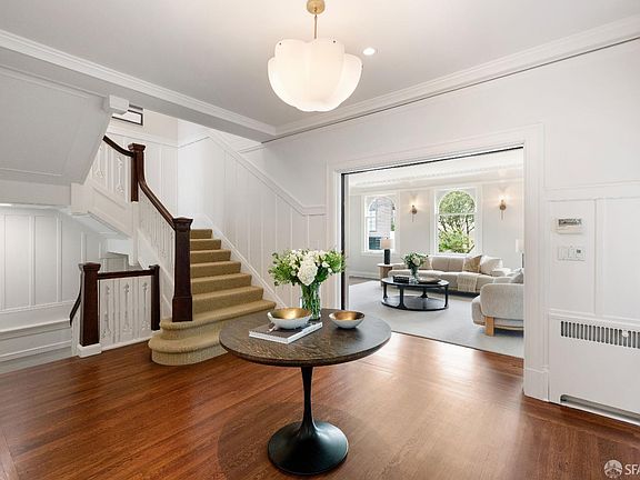 Originally designed in 1913 by master architect G. Albert Lansburgh, this beautiful Presidio Heights home blends classic Beaux-Arts styling with a contemporary perspective. Architectural richness abounds inside & out, w/the facade's arched windows & ornamental moldings creating an elegant first impression. The 3-level floor plan of 5BD/4.5BA benefits from a wide lot & an xlnt expansion & renovation. The integrity of the original design has been preserved, while greatly enhancing living space & modern function. Premium custom touches cascade throughout the home from the wainscoted walls & polished nickel hardware to the decorative ceiling treatments & sophisticated lighting. Whether it's relaxed family living or formal entertaining, this home accommodates every occasion. The graceful LR & DR transition to the gourmet chef's kitchen which opens to the breakfast area & family room. The upper level boasts a sought-after floor plan of 4BD/3BA, including the sensational primary suite w/wood burning frplc & views of the Golden Gate & Marin Headlands. Romantic terraces overlook the stylish rear garden designed by Andrea Cochran Landscape Architecture. A guest suite is found on the lower level along w/2 large rooms which offer versatility for a playroom, game room, home theater or office.