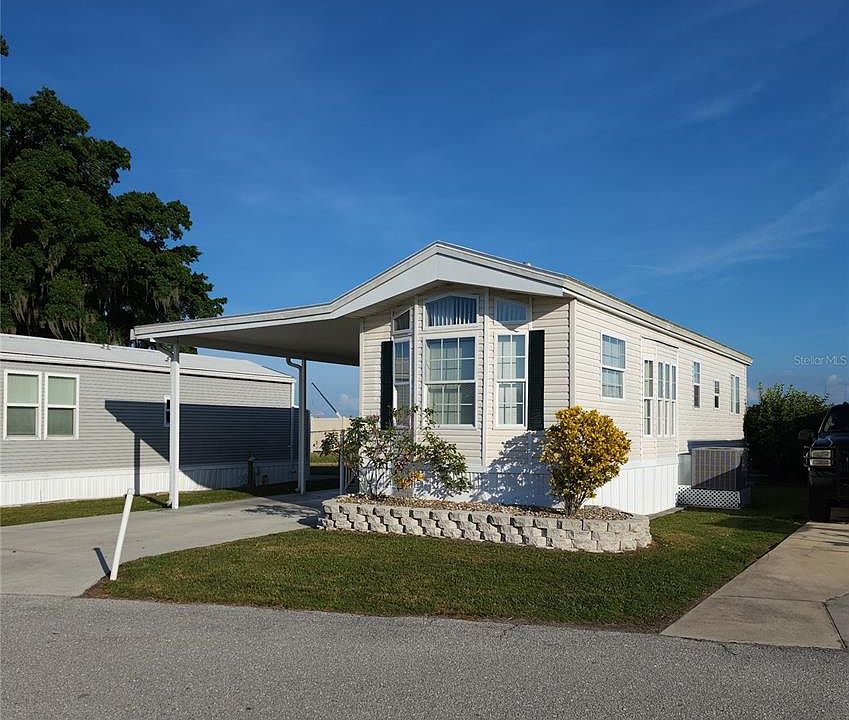 FURNISHED TURN-KEY MOBILE HOME IN ACTIVE 55+ COMMUNITY. One bed, one bath. Eat-in Kitchen. Large enclosed porch with storage closet. Efficient home office. Single carport and open rear patio. Appliances included. Stacker washer/dryer unit. Central A/C (2016). The community features two swimming pools, heated spa, tennis & shuffleboard courts, workshop, clubhouse, fitness room, fishing pier, and plenty of opportunities to make new friends. Low HOA fees of $450/quarter include: Water, sewer, trash, grass mowing, internet & basic cable. NO LOT RENT! Sorry, this is not a dog lot.