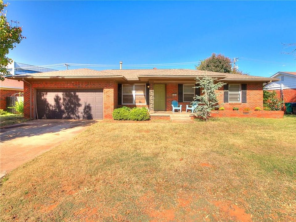 A great place to start out or to invest! 3 bedrooms 1 1/2 baths and a huge fully fenced yard! Such a convenient location!! The inviting front porch is just the beginning! Beautiful hardwood floors throughout the living, dining, and bedrooms. Lots of counter space and storage in the light and bright eat-in kitchen. Appliances include a built-in microwave, gas cooktop, dishwasher, and refrigerator. The master bedroom has a walk-in closet AND a private bathroom. The two additional bedrooms are roomy and have great closets and ceiling fans! The main bath is remodeled and updated with a granite top vanity and wainscot ceiling treatment. Great patio and backyard for entertaining just off the kitchen. Concrete drive leads to a 2 car garage! Newer HVAC System, all new PEX plumbing. Close to shops, restaurants, with easy access to NW 63rd Street and Highway 74. Don't miss this one!