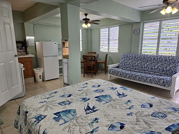 Great Location in Frenchtown, newly updated Studio. Fully furnished studio apartment, new queen mattress and furniture. $1200 monthly, 1 year lease. 1st, last and security deposit. No Sec 8. Water on cistern, Electric is extra. New AC just installed. Walk to work in town or enjoy a great location to restaurants and bars in Frenchtown. Small pets will be considered. This is not your normal island home, it's kept up in great condition. Available now. Water included, cistern. Electric (Wapa) is extra. 12 month lease, first, last and security deposit.