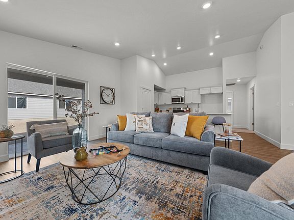 Fantastic, singlel level Sycamore plan will surely delight. Featuring a Vaulted chef's kitchen with quartz counters, large pantry, entertaining island, and 5 burner stainless air-fry convection range. Enjoy a spacious open concept Great room/Dining area with gas, stone fireplace perfect for entertaining. The Primary bedroom with coffered ceiling and bath with double sinks, shower and large walk-in closet. 95% high efficiency gas heating,