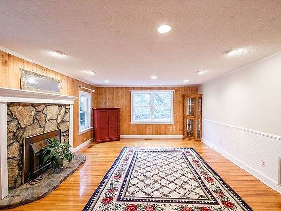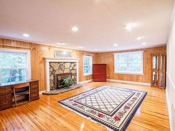 LOOKING FOR PEACE AND QUIET? This wonderfully secluded property is a rare find. Home is over 3000 sq. ft. 4 Bedrooms, 2 Full Baths, and 1 half bath. Kitchen w/tons of cabinet space, Dining room, Formal Living room w/rock gas fireplace, and a large Den. Master Suite has a private bath w/double vanity and tiled shower. Home has lot's of wood throughout for a rustic feel, which is very fitting for this property. Other features are 2500 sq. ft. building w/storage room, upstairs room, 1/2 bath, roll up Drive-in Door (great for RV) also 14x48 lean-to (great for tractor, mowers, etc.). 22x32 3 car carport. Pond, Very well landscaped, paved drive-way. 5.48 acres.