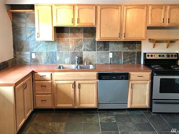 Ground level one bedroom, one bathroom condo featuring slate flooring, patio and washer dryer. All appliances stay. Conveniently located near Bellingham Technical College, Whatcom Community College, Bellingham Airport, I-5 and major shopping. 2 parking spots included, with additional guest parking out front. HOA dues are $73.60 and include water, sewer, garbage and insurance (not for personal contents).