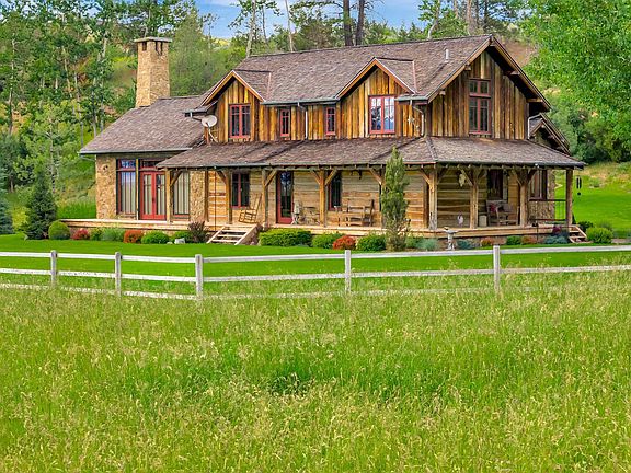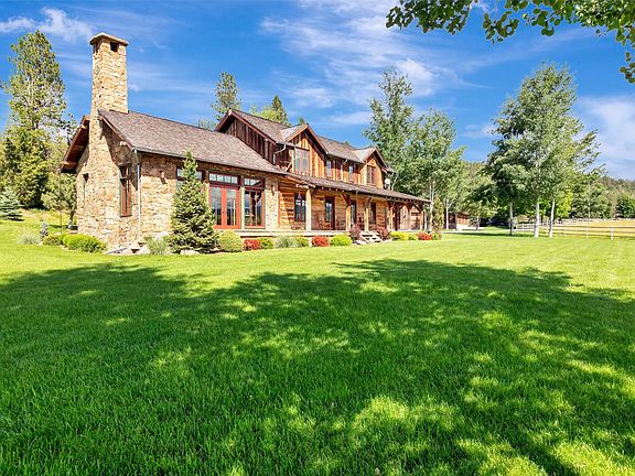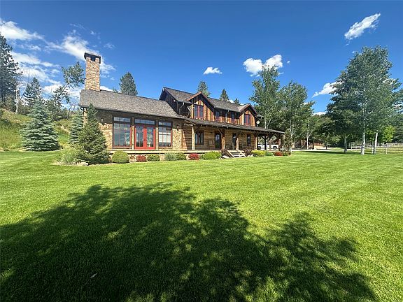 Welcome to your custom-built Montana masterpiece, a true embodiment of high-end Montana living. This 4,006 sq ft classic Montana rustic home offers modern comfort with exquisite details and craftsmanship. Reclaimed materials used throughout the home, including beautifully refinished barn wood floors, exposed beams, posts, ceiling tiles, and native rock, create a warm and inviting ambiance throughout. The main level features a chef’s kitchen with granite countertops, custom cabinets, a large island, and a top-of-the-line Wolf range. The open concept dining and living area, anchored by a stunning rock fireplace, seamlessly connects to decks on both sides of the house through glass doors and windows. A den or third bedroom and a guest bathroom complete this level. Upstairs, the primary en-suite boasts vaulted ceilings, a walk-in closet, and a luxurious double vanity bathroom with a tiled walk-in shower. The basement adds an additional bedroom, bathroom, and living area, all connected by an incredible floating staircase. Beyond the main house, you’ll find two outbuildings: a double detached garage with an office/workshop, constructed with native rock and reclaimed wood, and a meticulously crafted shop. The shop, a true work of art, features heating, a bathroom, and an entertainment space above with exposed timbers and beams, perfect for retreats or events. Situated on 15 acres, this rare property includes a pond, a tranquil landscaped private courtyard with a pergola next to the garden, irrigation, fencing and show stopping Bitterroot and Sapphire mountain range views. This thoughtfully detailed home is a masterpiece of Montana living. For more information or to schedule a showing please contact Nicole Jones at (406) 239-1421 or your real estate professional today.