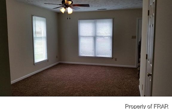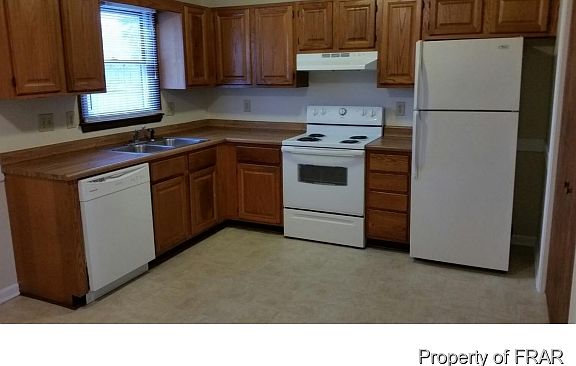-Fresh paint, new carpet and new vinyl throughout. Well maintained property. Outside storage, patio. Minutes from Fort Bragg. Range, dishwasher, refrigerator, disposal