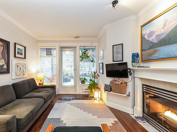 Kitsilano Gem! Welcome to Blenheim Terrace. This smartly designed, nearly open-plan home offers 578sqft of living space plus a massive 426-sqft private terrace, perfect for entertaining, outdoor dining, or creating your own potted garden oasis. This quiet, 1-bedroom suite features in-suite laundry, a gas fireplace, and laminate flooring throughout. Enjoy easy access to UBC and everything Vancouver has to offer. Just steps to McBride Park, local shops and restaurants, and a short stroll to Jericho or Kitsilano Beach. Two pets allowed, and parking and locker are included. Shared EV vehicle charger for residents. This is truly a rare opportunity. Both the home and building have been meticulously maintained. 1st showings Thurs Dec 4 from 5:30-6:30pm. Open Houses Sat & Sun Dec 6/7 from 3-4pm.