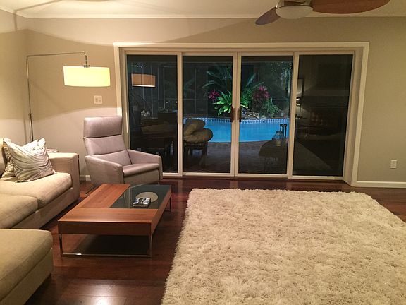 Completely renovated home on two thirds of an acre directly across from the river on one of Fort Myers most desirable streets. Model like home that is truly move in ready. 3 bedrooms, all en suite, with full walk-in closets. The living and dining rooms have pocket glass sliders that open to the outside covered lanai area, with pool, brick pavers, skylight, new wood burning fireplace and tropical rock waterfall. With an additional 1,944 sq. ft. of space, it's a private oasis in your own back yard. Located on an oversized corner lot, the home is extremely private & quiet with lush native plants, large oaks, fruit trees and mature landscaping. Renovations include a new roof, electrical, hardwood flooring, interior and exterior paint, new garage door, updated baths and much more. The kitchen was featured in "Properties of SW Florida" and has travertine flooring, granite countertops, tile backsplashes, custom cabinets with under cabinet and accent lighting, stainless steel appliances including a convection oven and microwave & a large walk-in pantry with wooden storage shelves. Multi-zoned sprinkler system for watering the landscaping and tons of storage in the oversize attic.