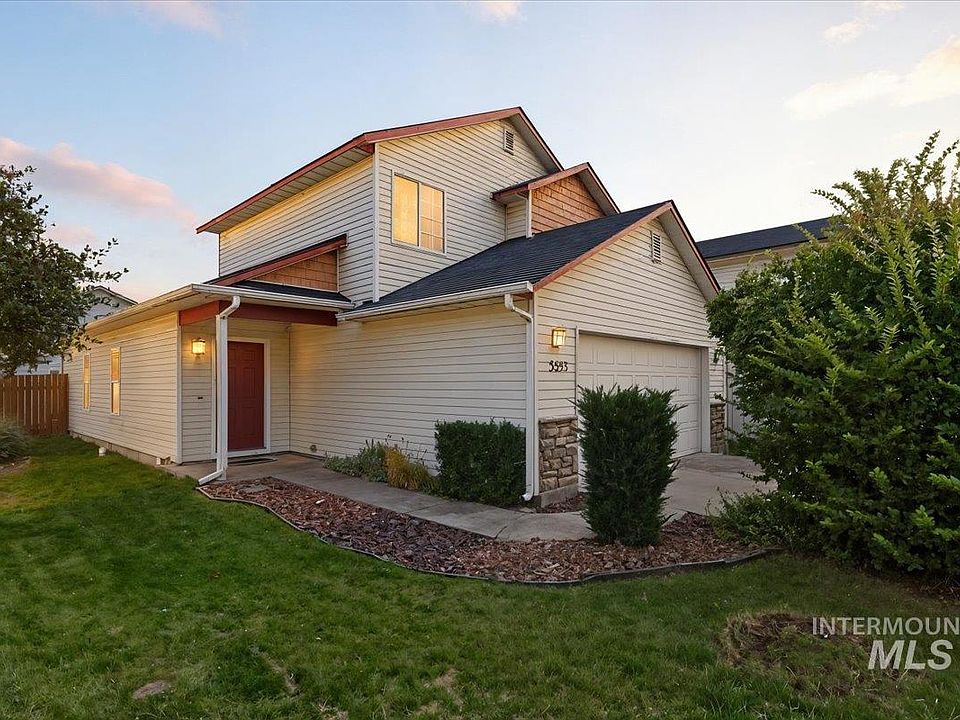 Welcome to 3333 W Wave Dr in Meridian a home designed for comfort and convenience in one of the Treasure Valley’s most desirable cities. Step inside to an inviting great room with vaulted ceilings, abundant natural light, and seamless flow into the kitchen and dining area. The kitchen features generous counter space, wood cabinetry, and modern appliances, making daily living and entertaining easy. The main-level primary suite provides comfort and privacy with its own bath, while upstairs a spacious bonus room offers flexibility for media, fitness, hobbies, or work-from-home needs. Multiple bedrooms add space for rest or creativity. Outside, the fenced backyard with patio is ideal for relaxing, gardening, or pets. An attached two-car garage ensures parking and storage convenience. Just minutes from the upcoming District at Ten Mile, as well as shopping, dining, and I-84, this property blends location, flexibility, and livability in the heart of Meridian.